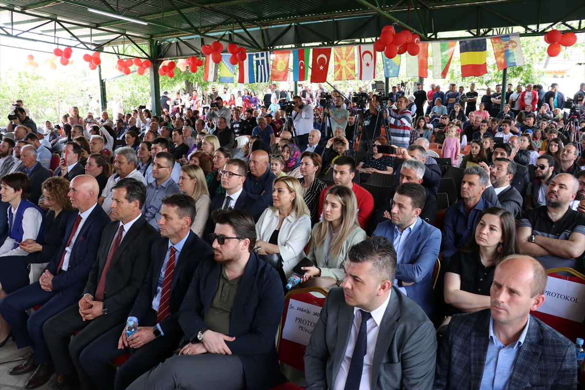 Balkan ülkelerinden gelen halk oyunları ekiplerinin gösteri yaptığı şenlikte, yağlı güreşler ilgiyle izlendi.