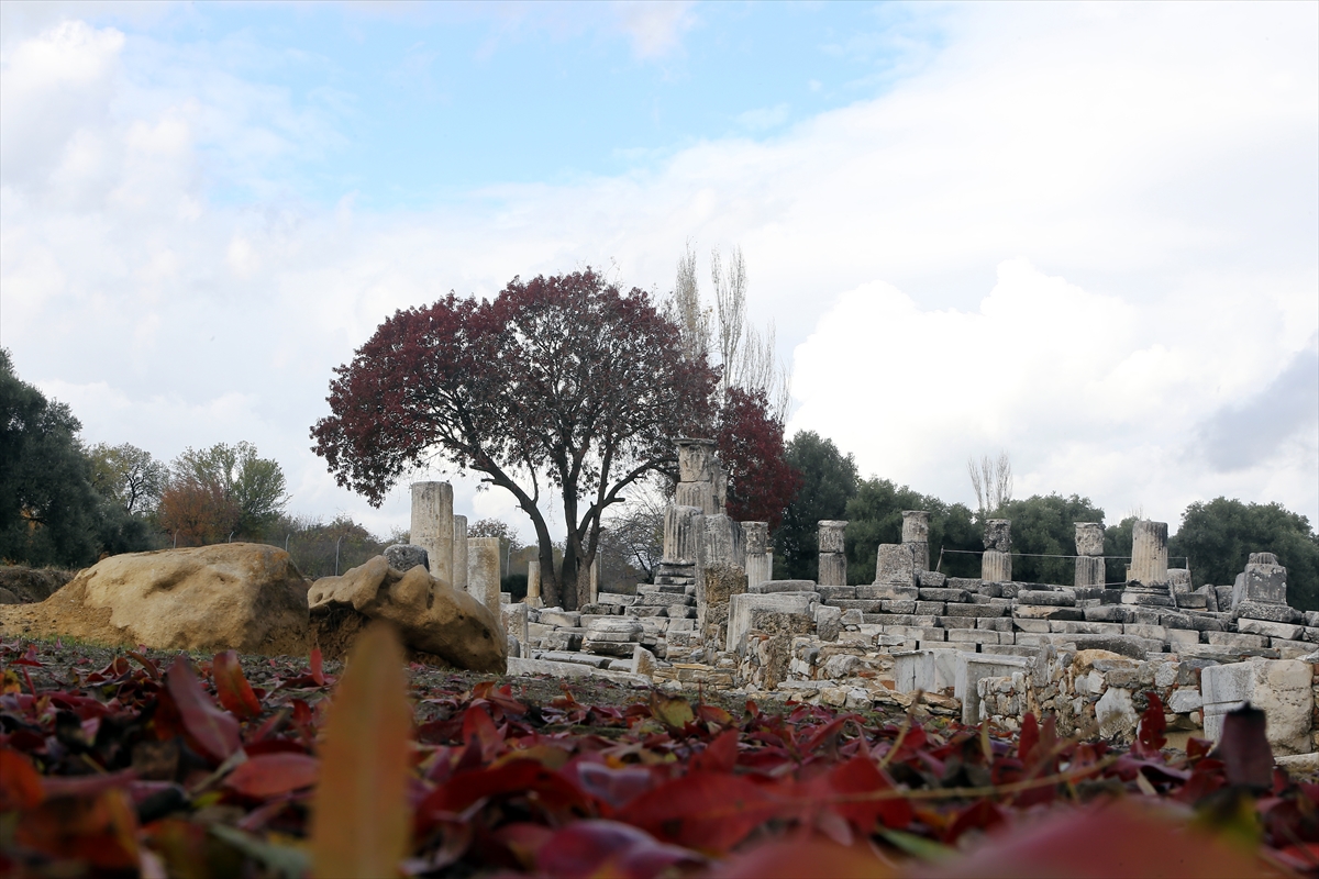 Muğla'daki, Pagan inanışının merkezi kabul edilen 3 bin yıllık Lagina Hekate Kutsal Alanı'nda yürütülen çalışmalarda gün yüzüne çıkarılan eserlerin bulunduğu alanlar, sonbahar renkleriyle dikkati çekiyor.