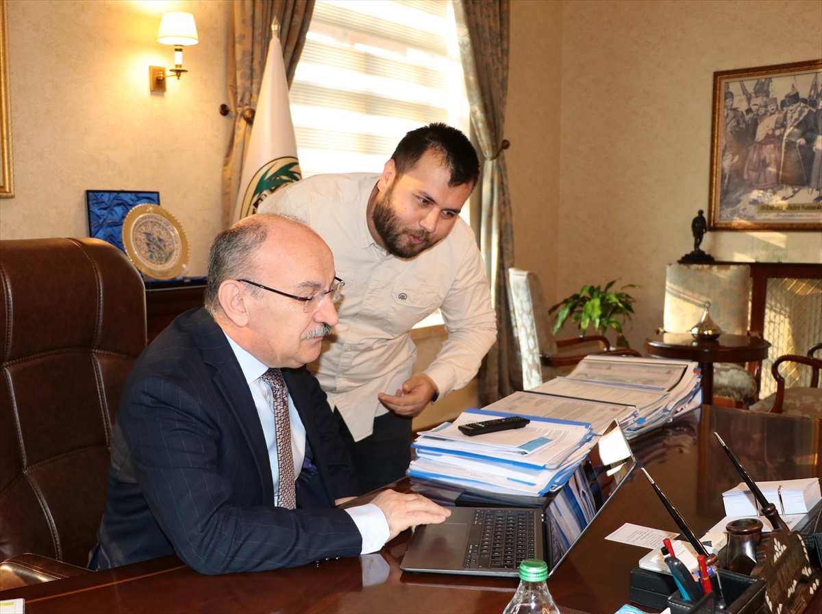Vali Karadeniz, makamında, AA foto muhabirleri ile muhabirlerinin yurt içi ve yurt dışında çektiği fotoğrafları tek tek inceledi.