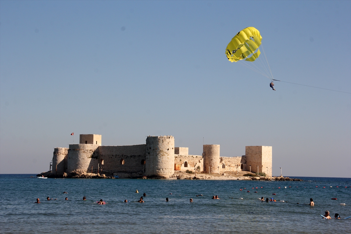 UNESCO Dünya Mirası Geçici Listesi'ndeki Korykos Antik Kenti'nin parçası olan Erdemli ilçesindeki Kızkalesi'nde, yazdan kalma günler yaşanıyor.