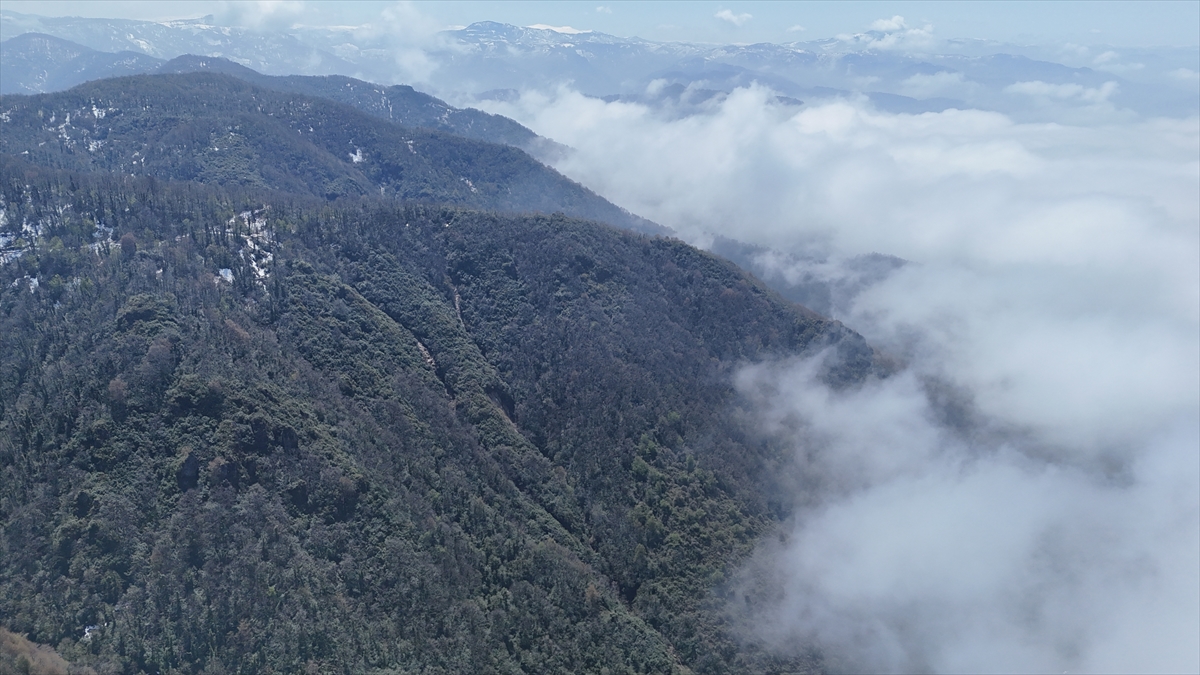 Sis bulutunun oluşturduğu manzara dronla havadan da görüntülendi.