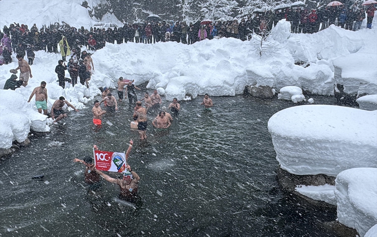 RİZE (AA) – Rize'de Kaçkar Dağları Milli Parkı içerisindeki gölde kar yağışı altında "9. Kış Yüzme Şenliği" düzenlendi.