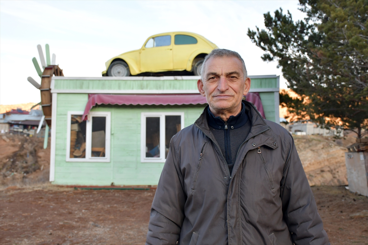 SİVAS (AA) – Sivas'ta bir ahşap ustası, kenti Kayseri'ye bağlayan kara yolu kenarında yaklaşık 30 metre yüksekliğindeki tepede sergilediği 1968 model klasik otomobilini satışa çıkardı.