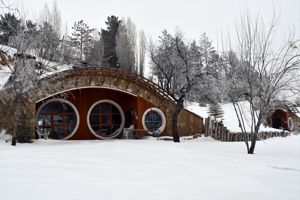 SİVAS (AA) – Sivas'ta "Yüzüklerin Efendisi" filmindeki "Hobbit Evleri"nden esinlenilerek inşa edilen yamaç evleri ve çevresinde, kar yağışıyla güzel görüntüler ortaya çıktı.
