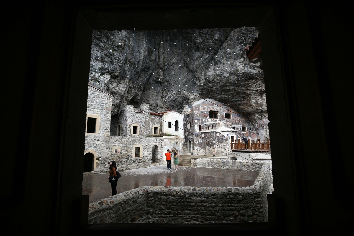 Trabzon'un Maçka ilçesindeki Karadağ'ın Altındere Vadisi'nde 300 metre yükseklikte kayalar oyularak inşa edilen Sümela Manastırı ziyaretçilerine doğa, tarih ve kültürü bir arada sunuyor.