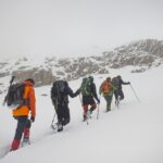 Kar kalınlığının 1 metreyi bulduğu parkurda yürüyen dağcılar, yaklaşık 8,5 saatlik zorlu tırmanışın ardından 2800 rakımlı zirveye ulaştı.