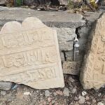 İlçenin İbimahmut köyünde yaşayan Ali Can Erdoğan, bir süre önce köyünün çevresinde parçalanmış haldeki mezar taşlarını fark etti.