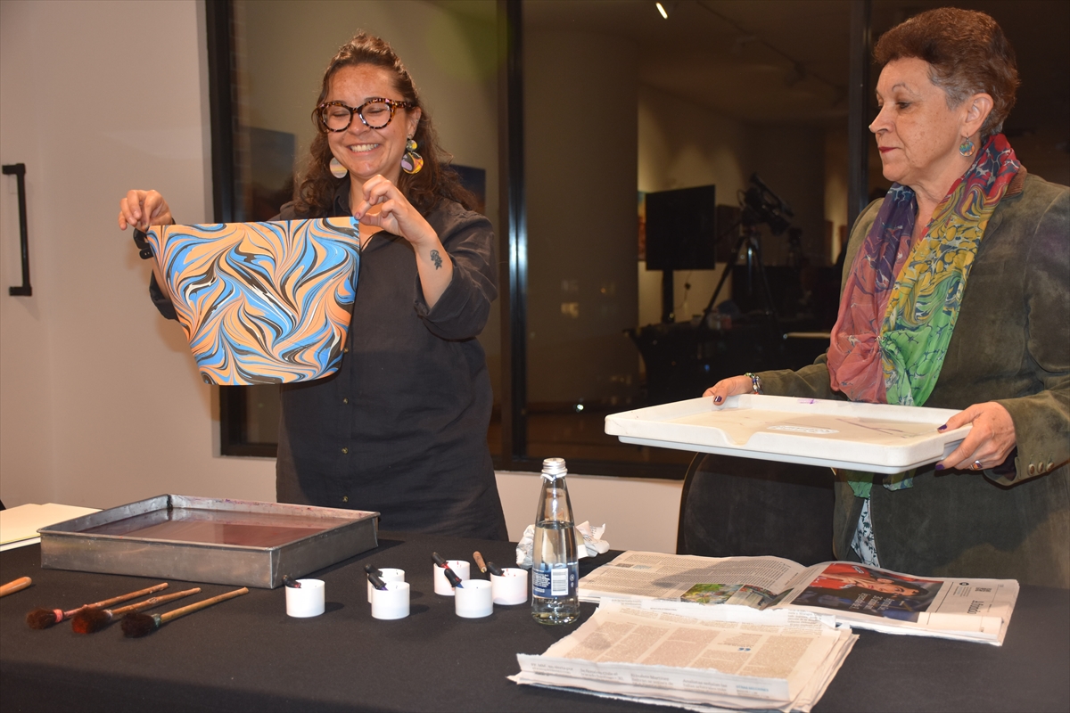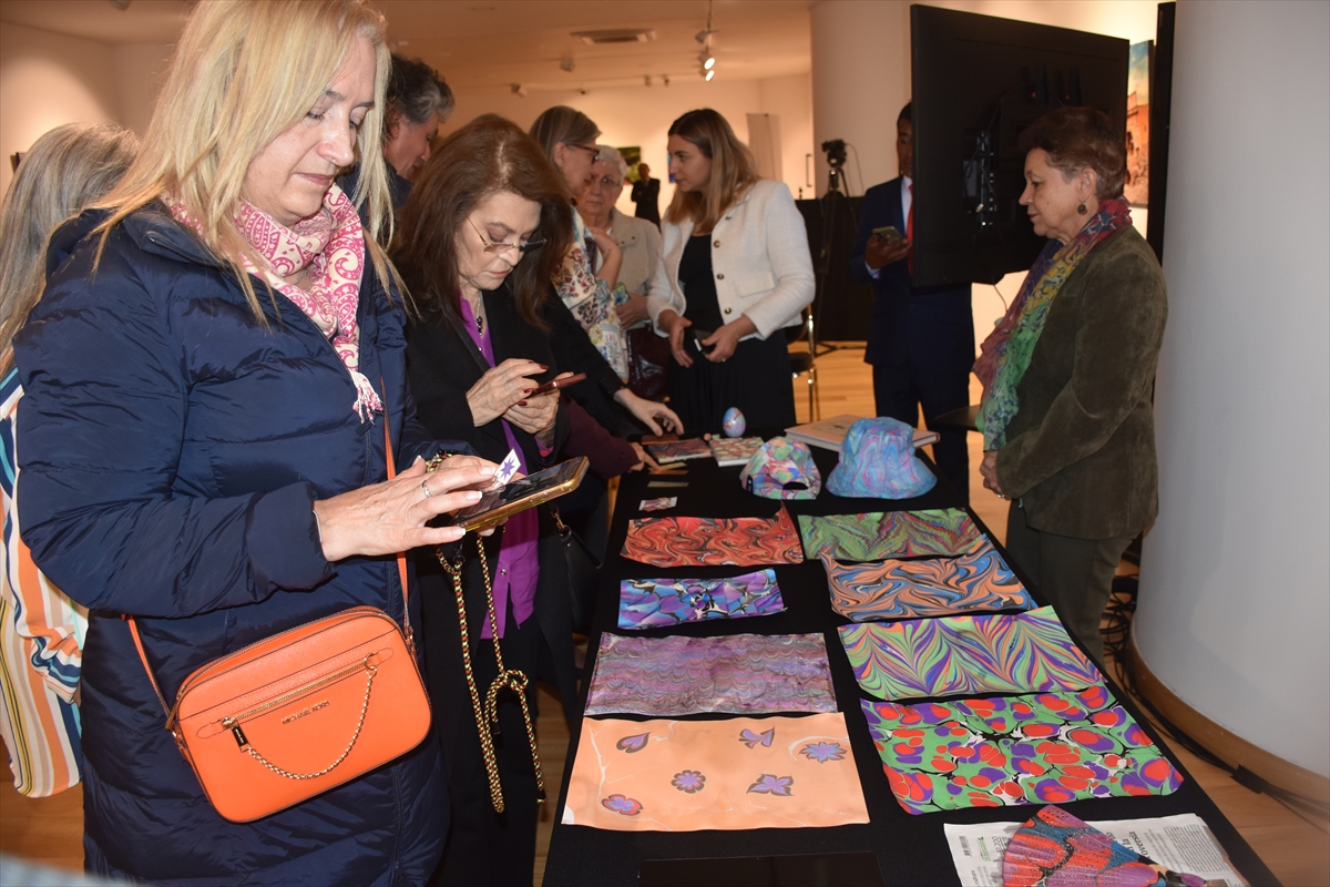 Türkiye'de 4 yıl yaşayan ve bu sürede Ebru sanatında kendini yetiştiren Diana Diaz, katılımcılara Ebru sanatının nasıl icra edildiğine ilişkin sunum gerçekleştirdi.