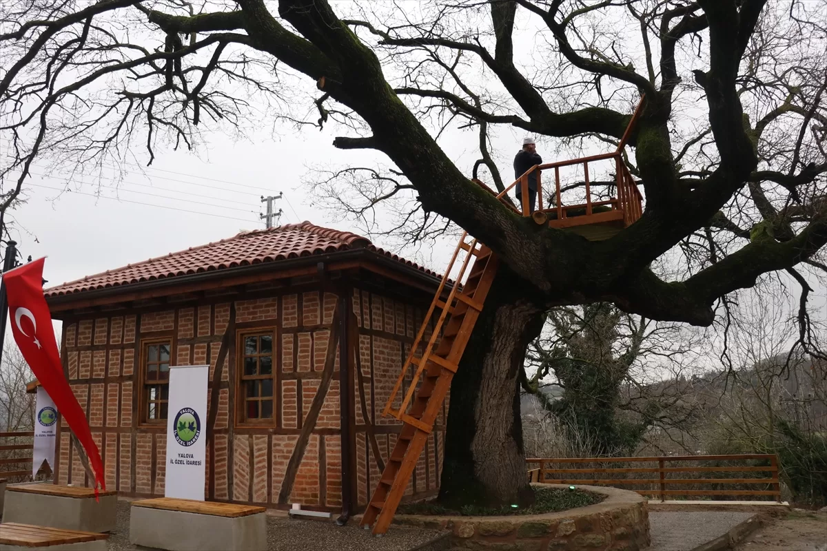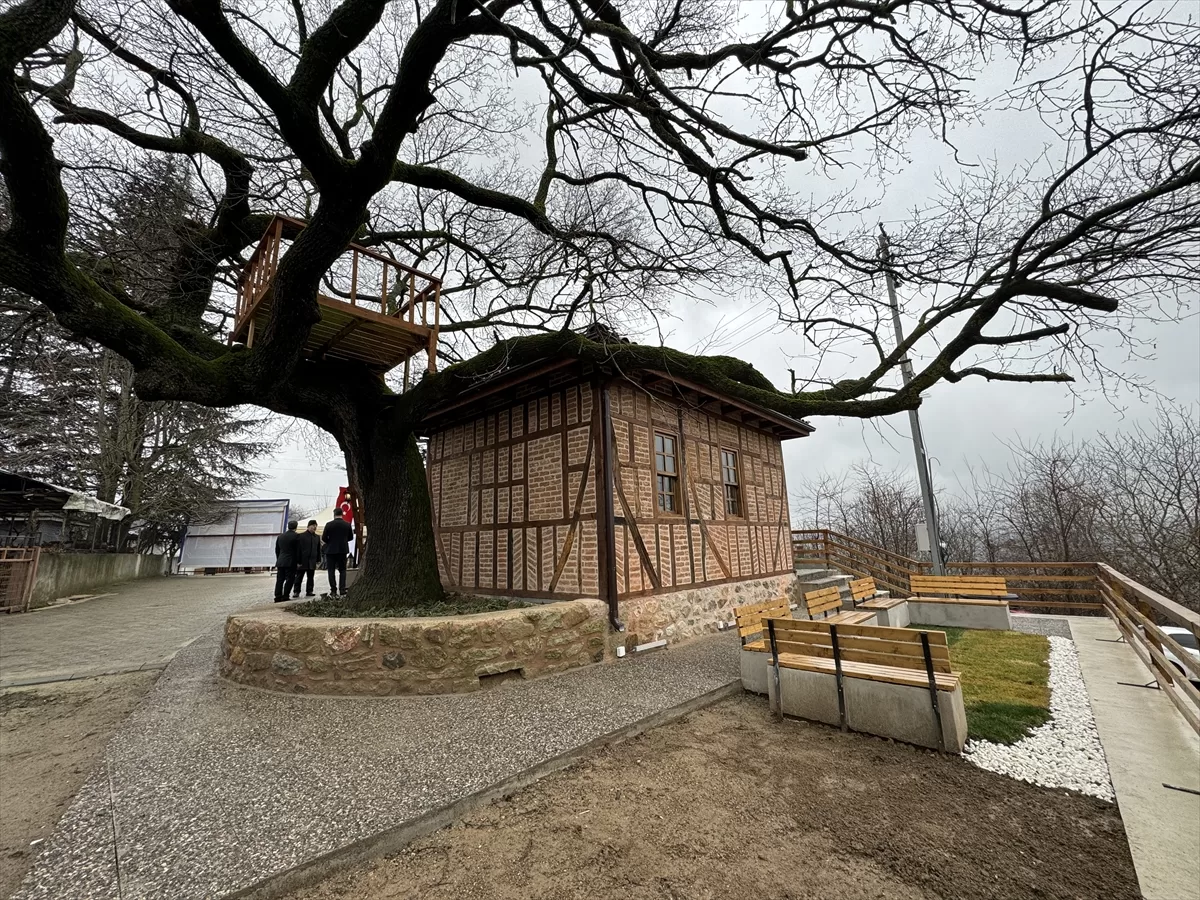 Aynı Yürüyen Köşk'e benzer hikayesi olan bir ağacımız da var burada. Mescidin yanındaki meşe ağacı minare olarak kullanılarak ezan okunurdu. Biz de bu geleneği sürdürmek adına basit bir yapıyla ağacın üstüne ulaşılabilir bir hale getirdik. Yine ağacın da tescil süreciyle ilgili başvuruda bulunduk. Tescile değer bir ağaç olduğu kanaatiyle Bursa Tabiat Varlığı Bölge Kurulumuzca tescil süreci devam ediyor. İnşallah bu yıl içerisinde ağacımızın tescil sürecini tamamlamış olacağız."