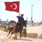 Atatürk Havalimanı'nda düzenlenen festivalin atlı sporlar alanında yapılan etkinlikte Azerbaycan ekibi, geleneksel danslarını ve at üzerinde yaptıkları akrobatik hareketlerle hünerlerini sergiledi.