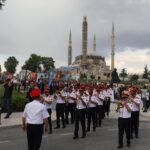 Edirne Valisi Kürşat Kırbıyık, Edirne Belediye Başkanı Recep Gürkan ve Kırkpınar Güreş Ağası Seyfettin Selim'in de aralarında bulunduğu kortej, bando eşliğinde belediyeden Atatürk Anıtı'na kadar yürüdü.