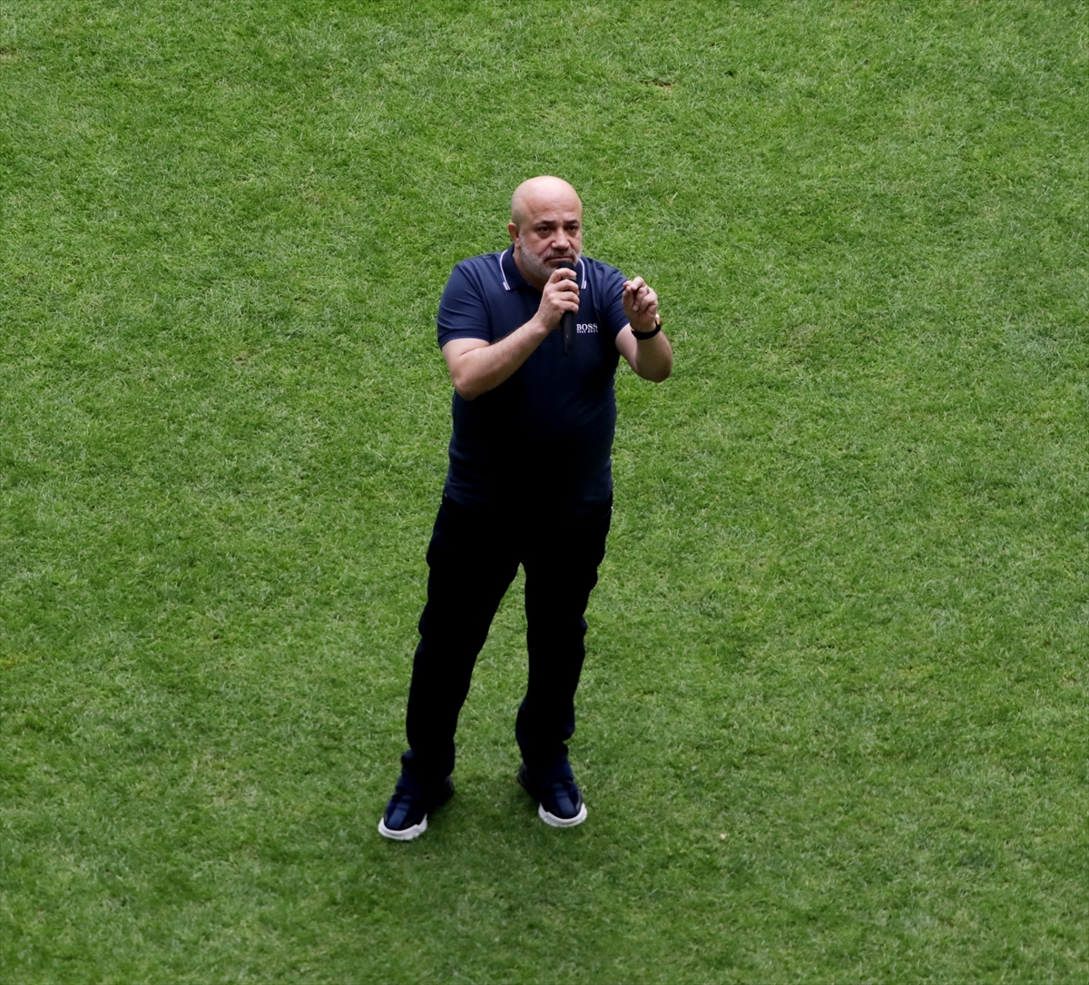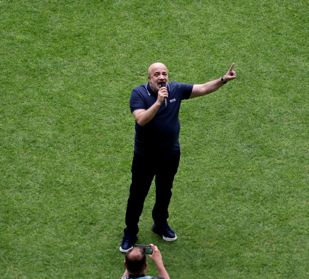 Sancak, Yeni Adana Stadı'nda oynanacak Adana Demirspor-Göztepe maçı öncesi saha içinde mikrofonu alarak stat ses sistemi aracılığıyla taraftarlara seslendi.