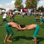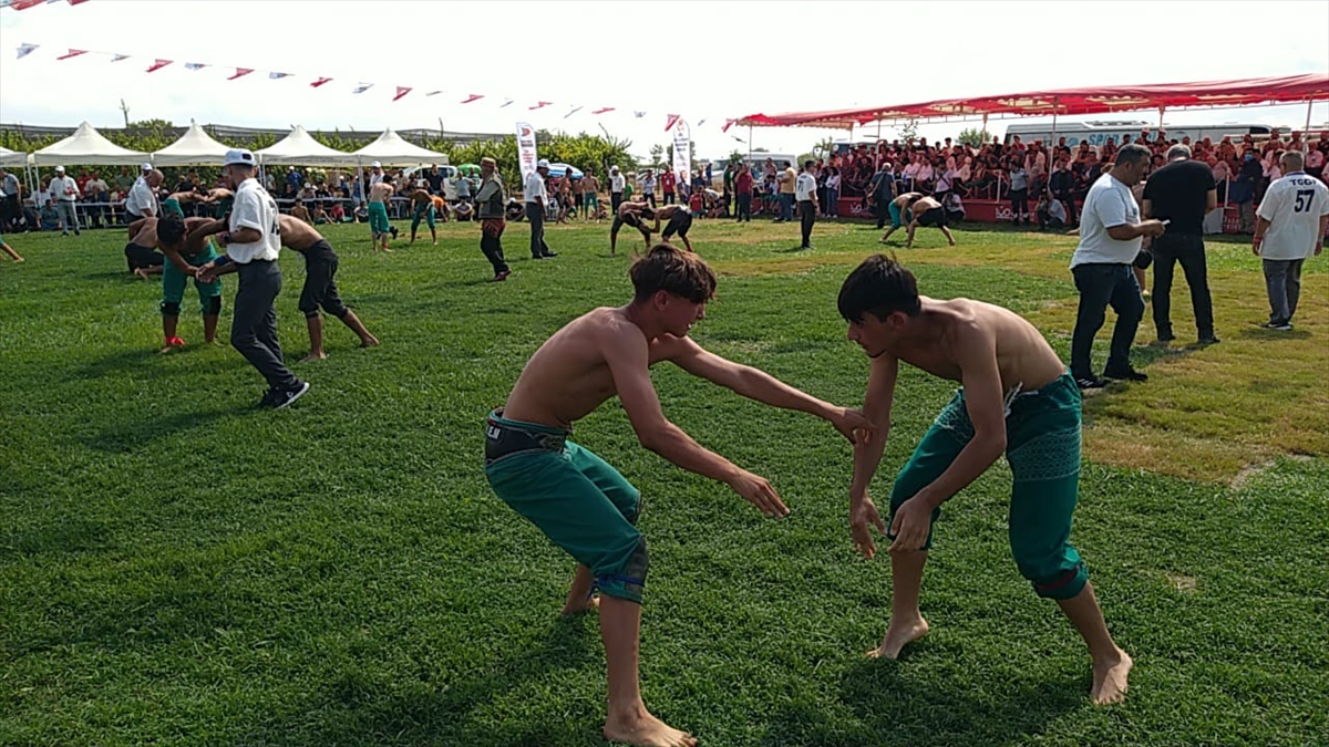 Güreş öncesi yağlanarak er meydanına çıkan sporcular, başpehlivan olabilmek için mücadele etti.