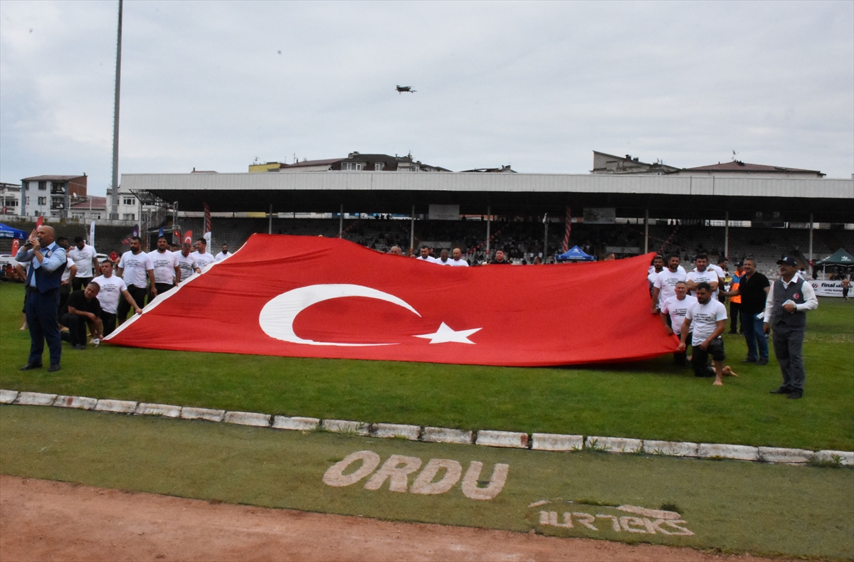 Konuşmaların ardından Altınordu Belediye Başkanı Aşkın Tören ile Recep Kara, Cengizhan Şimşek, İsmail Balaban, Orhan Okulu, Mehmet Yeşil Yeşil, Şaban Yılmaz, Osman Aynur ve Fatih Atlı'nın da yer aldığı 52 başpehlivan, dev Türk bayrağı eşliğinde sahada tur atarak güreşseverleri selamladı.