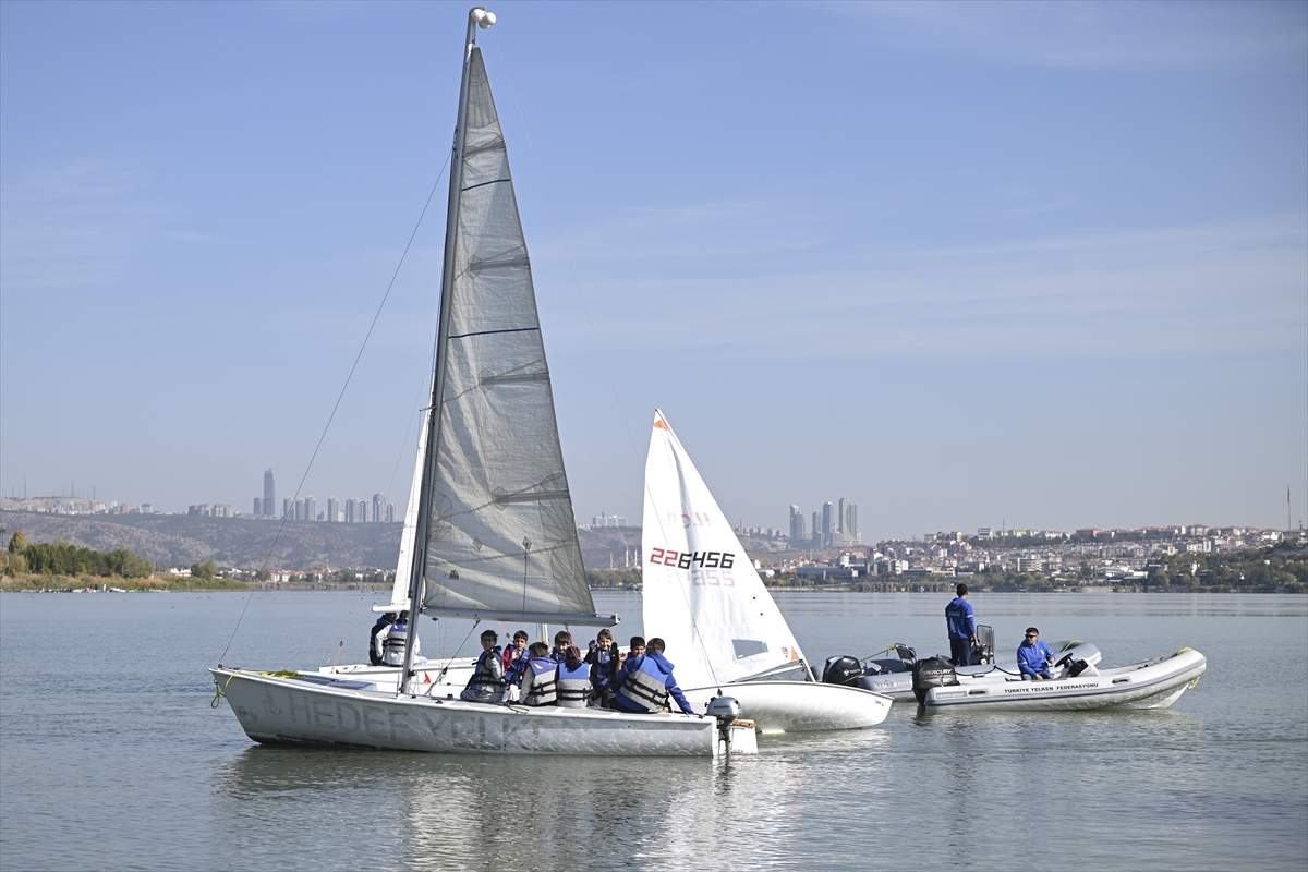 Konuşmaların ardından yelkenciler, Mogan Gölü'nde kısa bir gösteri düzenledi.