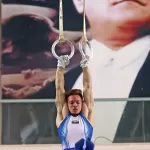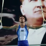 Mehmet Ayberk Koşak, halka aletinde 14,450 puanla ikinci olup gümüş madalya kazandı.