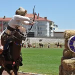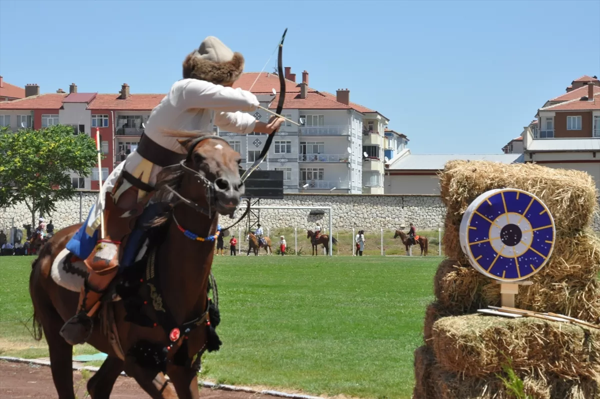Sporcular, at üzerinde akrobatik hareketlerle belirlenen hedeflere ok attı. Yarışmacılar yarın da kabak bendinde mücadele edecek.