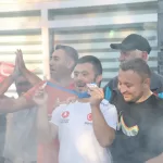 Kulüp girişinde çiçeklerle karşılanan milli sporcuya arkadaşları ve yakınları sevgi gösterisinde bulundu.