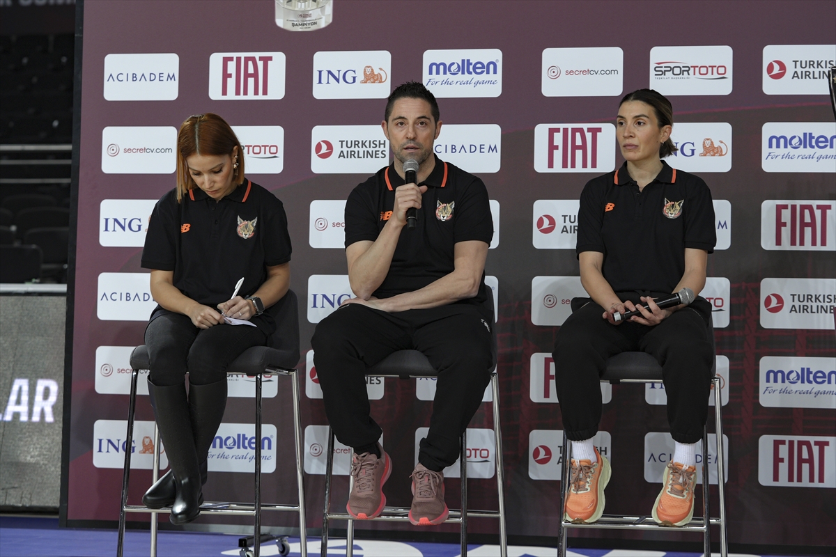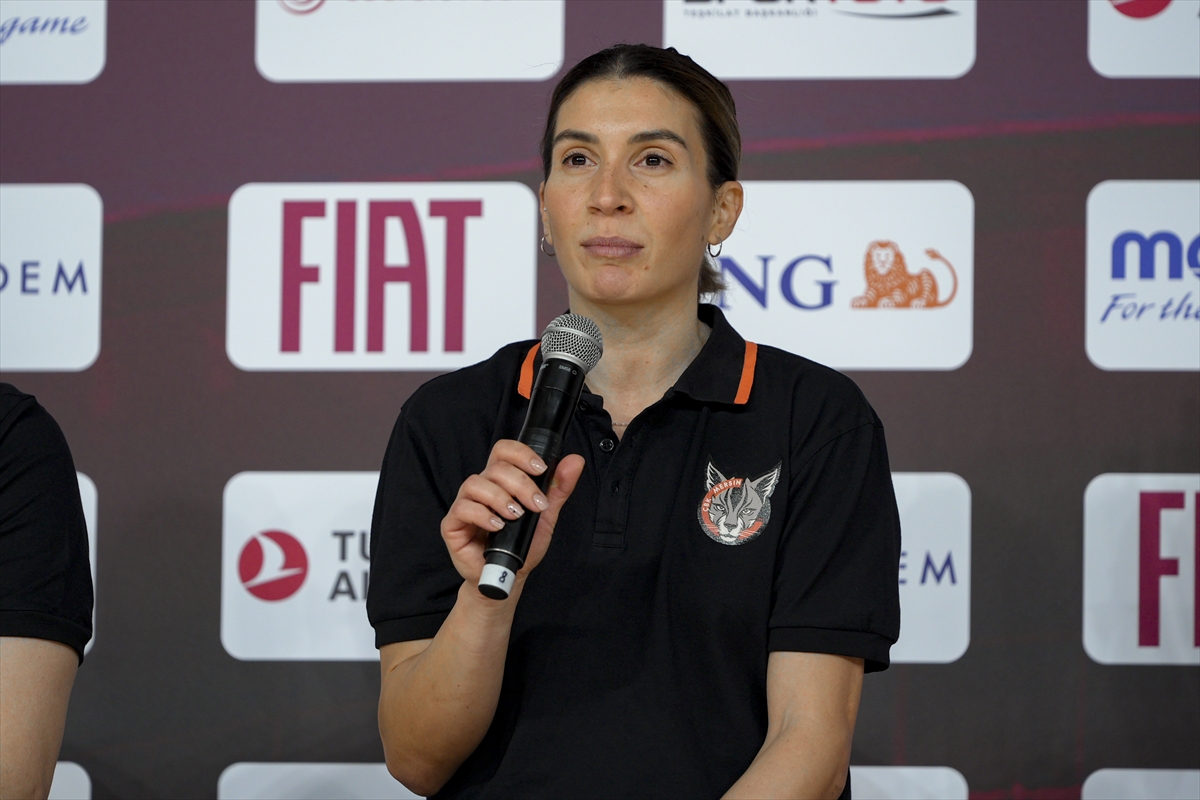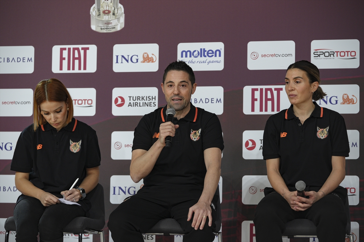 Ankara Spor Salonu'ndaki basın toplantısına Fenerbahçe Opet Başantrenörü Valerie Garnier, sarı-lacivertlilerin kaptanı Şerife Alperi Onar, ÇBK Mersin Başantrenörü Victor Lapena ve Mersin ekibinin kaptanı Asena Yalçın katıldı.