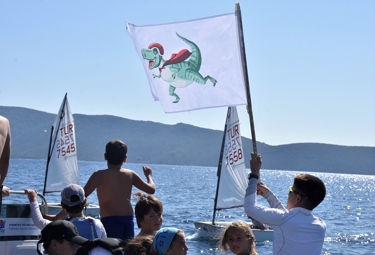 MUĞLA (AA) – Muğla'nın Bodrum ilçesinde, çocukları optimist sınıfı sporcusu olan anne ve babalar, "Dino Cup" mücadelesinde yelken açtı.