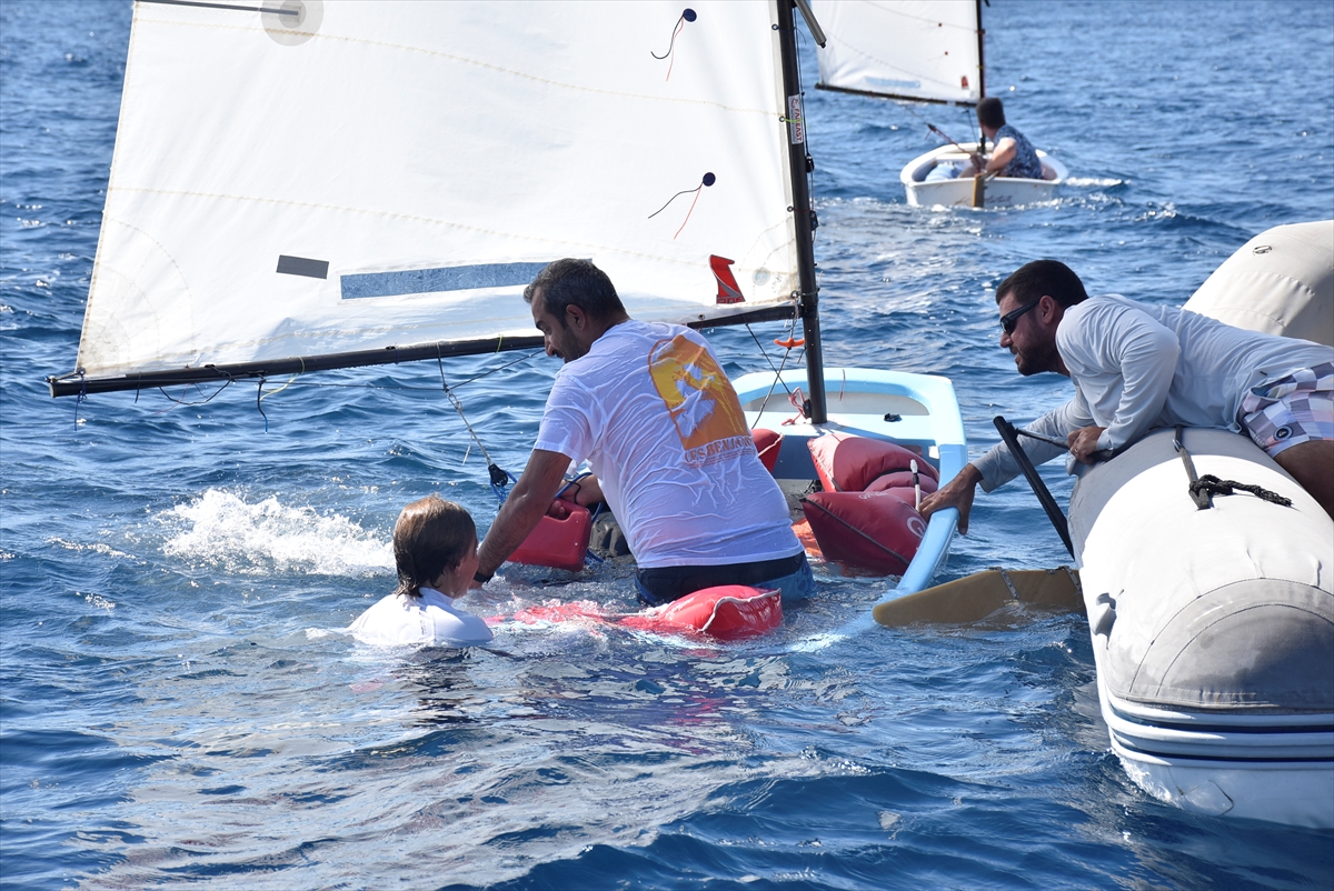 Bazı yarışçılar, tekneleri kontrol etmekte güçlük çekerek denize düştü. Tekneleri ters dönen yarışçılar, görevli antrenörler ve optimist sporcularının yardımı ile yarışa devam etti.