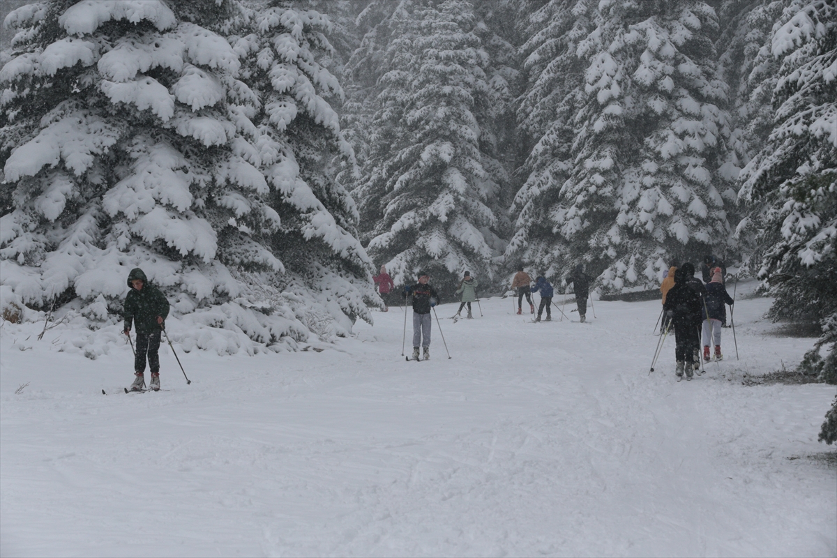 Gerede ilçesindeki Arkut Dağı Kayak Merkezi'nde kar yağışı, 3 gündür aralıklarla devam ediyor.