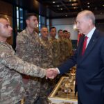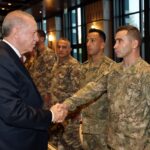 Erdoğan, sporcular, askerler ve antrenörleriyle bir süre sohbet etti.