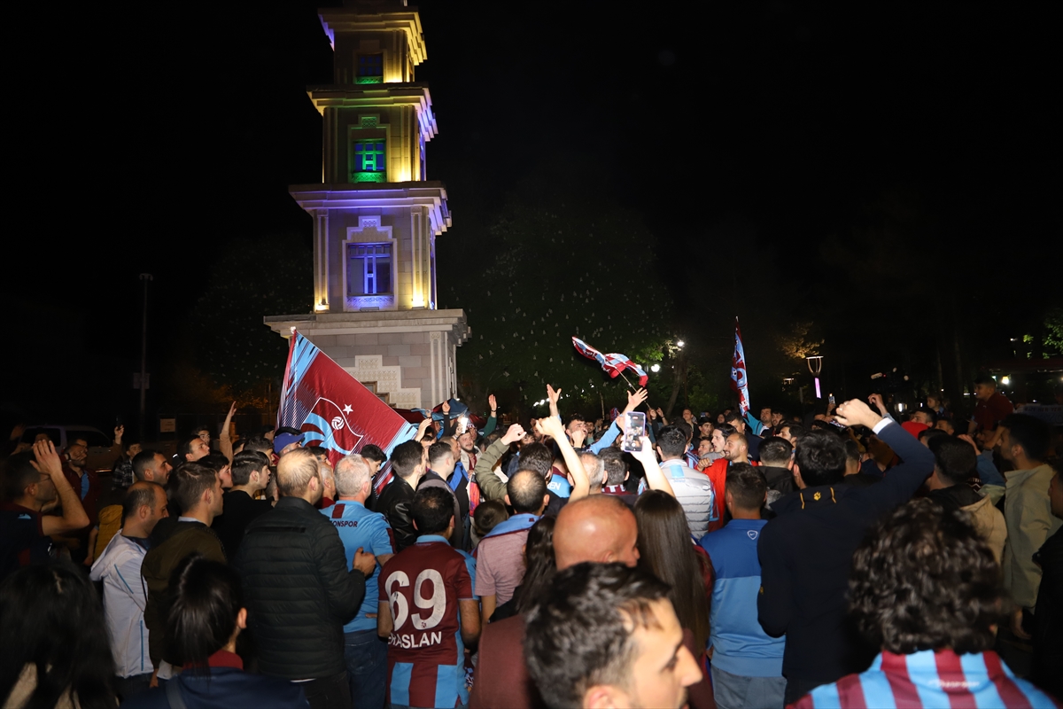 Söyledikleri marşlarla caddelerde yürüyen ve araçlarıyla turlayan taraftarlar, meşale yaktı, horon ve kolbastı oynayarak kutladı.