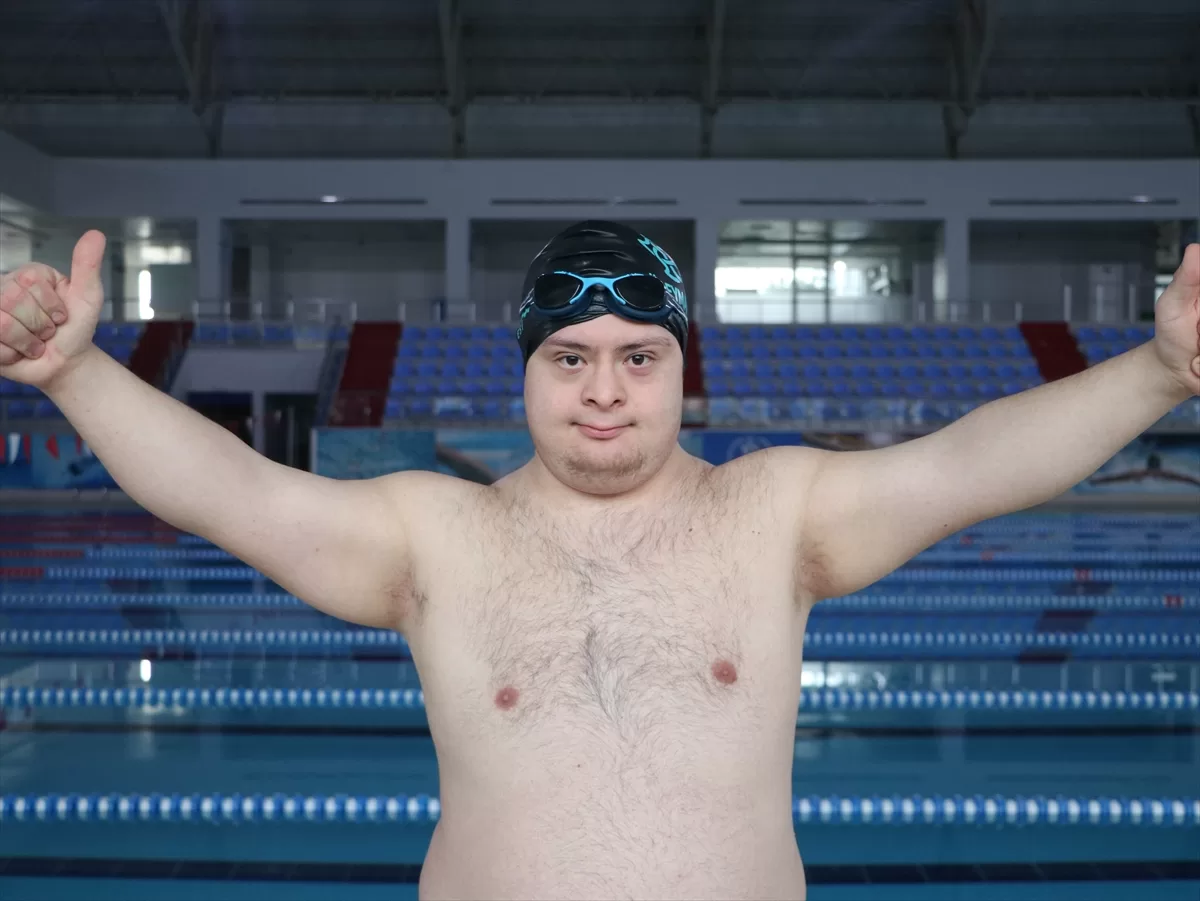 TEKİRDAĞ (AA) – MESUT KARADUMAN – Tekirdağ'da 26 yaşındaki down sendromlu Oğuzhan Ayas, 10 yıl önce sosyalleşmek için başladığı yüzmede milli formayı giymeyi hedefliyor.