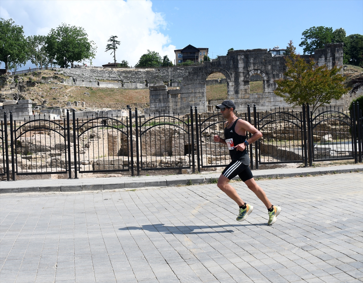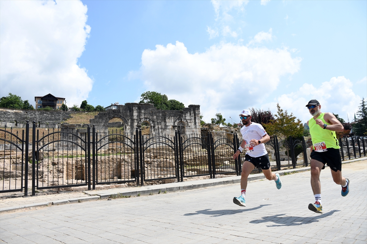 Vali Selçuk Aslan, tarihi milattan önce 3. yüzyıla uzanan Prusias Ad Hypium Antik Kenti'nin önünde oluşturulan başlangıç noktasında sporculara başarılar dileyerek, koşunun startını verdi.