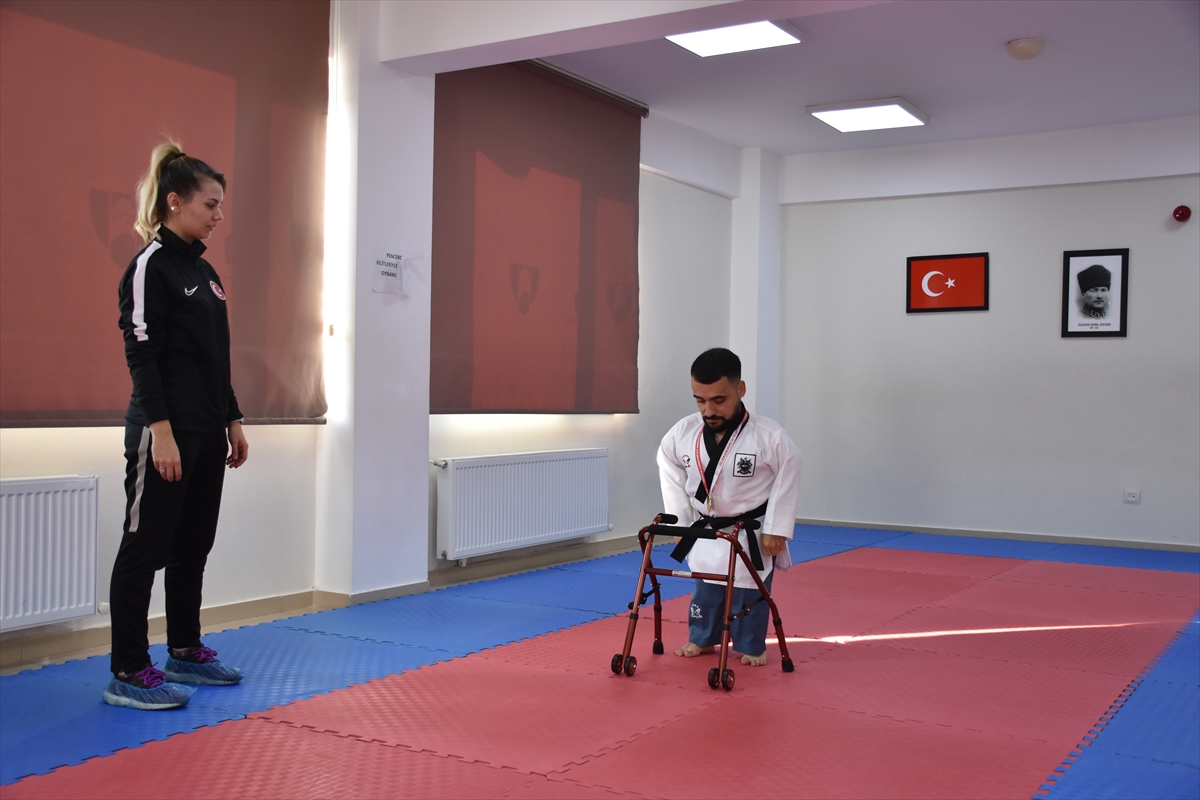 ESKİŞEHİR (AA) – YAVUZ EMRAH SEVER – Eskişehirli 30 yaşındaki doğuştan cam kemik hastası Burak Sakçı, sporun engelli bireylere olumlu katkısını göstermek için tekvandoya başladı.