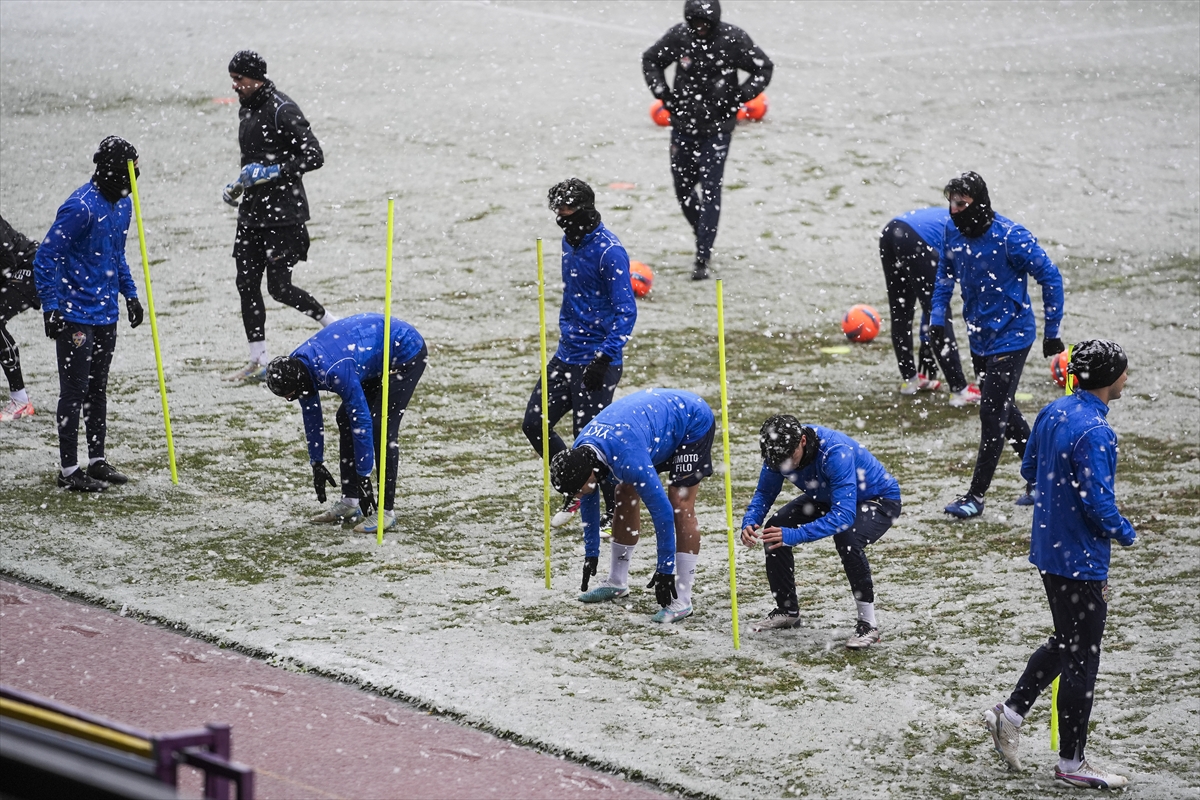 Eyüp Stadı'ndaki antrenman, teknik direktör Arda Turan yönetiminde yoğun kar yağışı altında yapıldı.