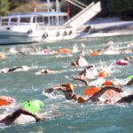 Kaymakam Akkaya’nın verdiği startın ardından sporcular, 6 bin metrelik parkurda kulaç attı.