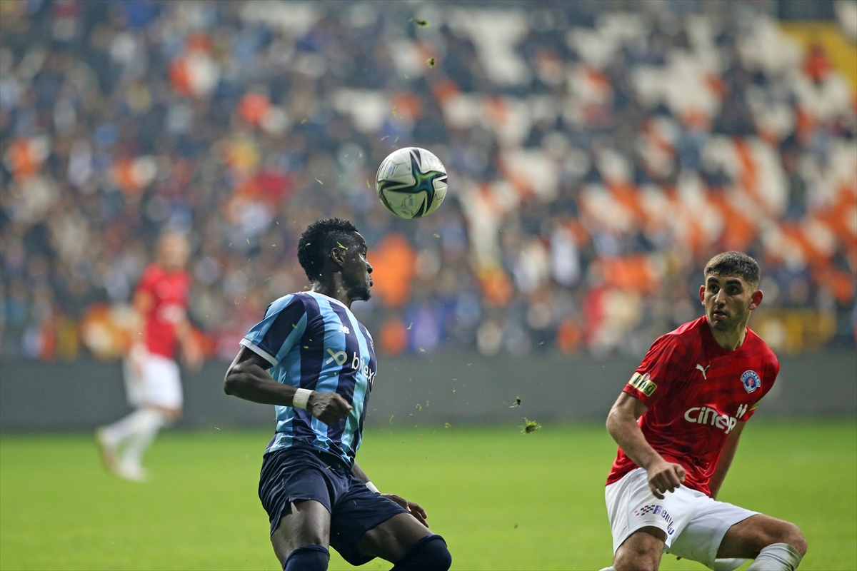 5. dakikada Adana Demirspor'da Yunus Akgün'ün ortasında ceza sahası içinde Assombalonga'nın kafa vuruşunda top, kaleci Harun Tekin'de kaldı.