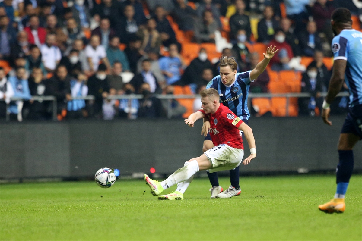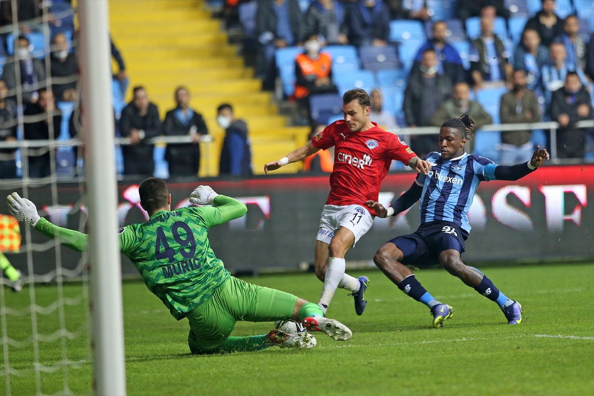8. dakikada Adana Demirspor'da Vargas'ın ceza sahası dışından sert şutunda, top üstten dışarı çıktı.