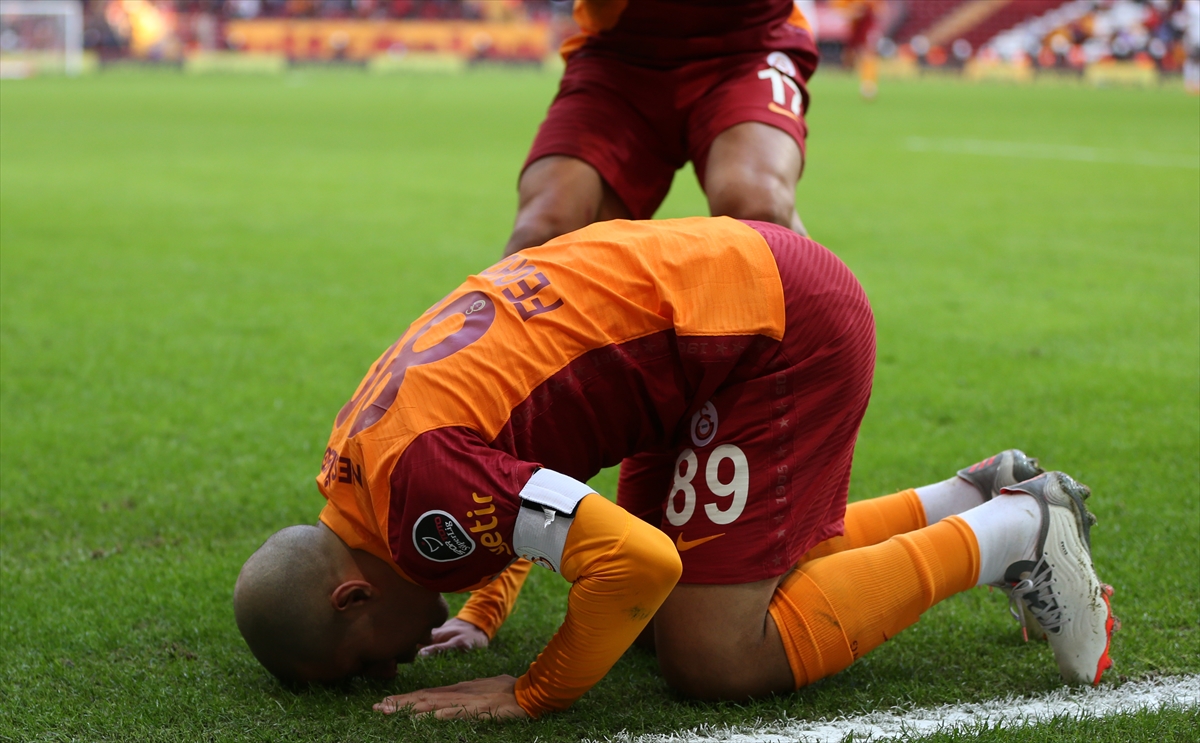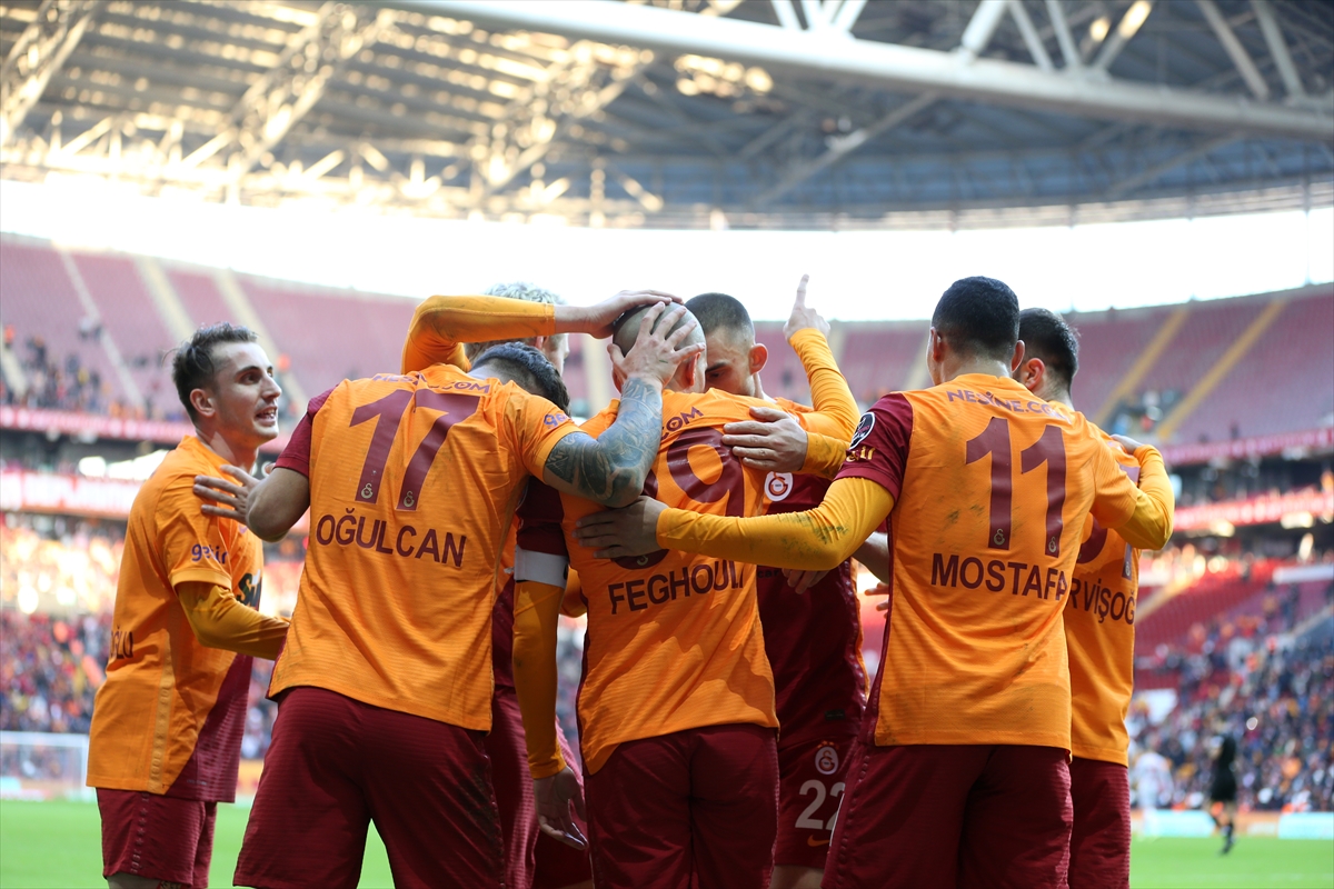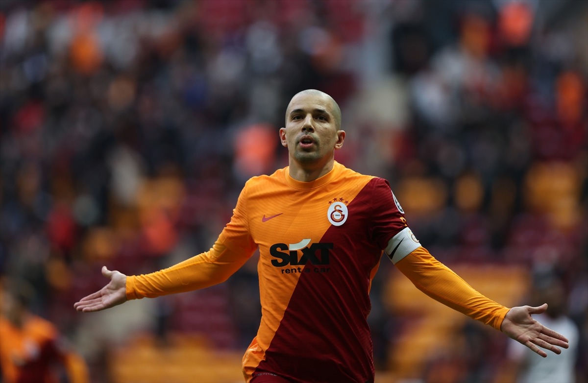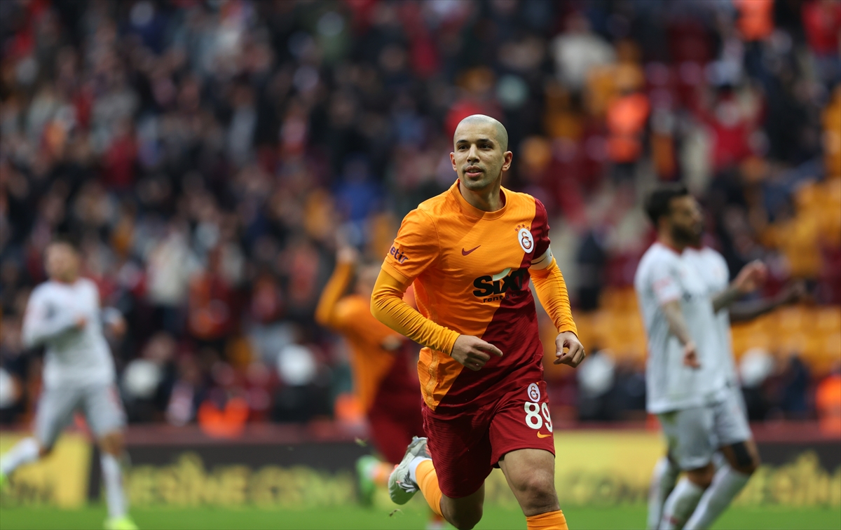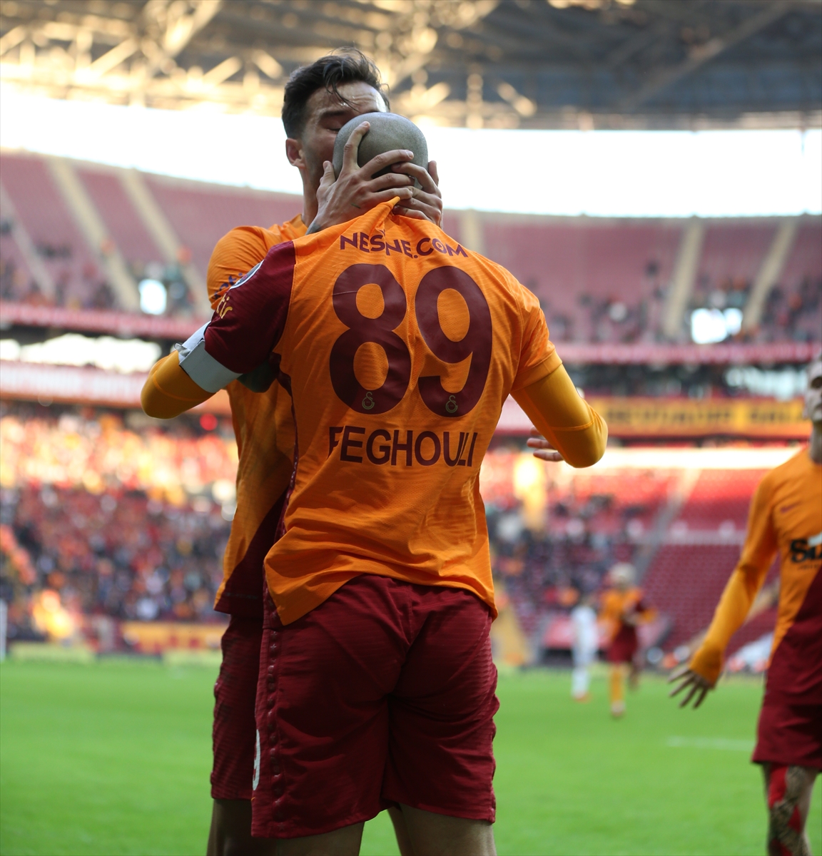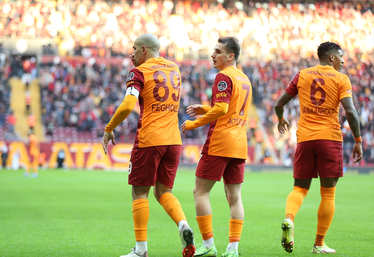 45+1. dakikada Galatasaray 1-0 öne geçti. Kerem Aktürkoğlu'nun pasıyla soldan ceza sahasına giren Feghouli, yaptığı sert vuruşla topu uzak köşeden ağlarla buluşturdu.