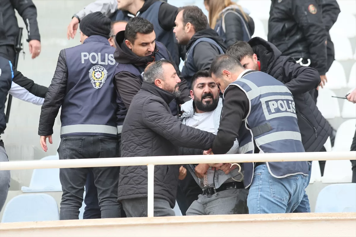 Bu arada karşılaşmada ev sahibi Kars 36 Spor taraftarlarından bazıları taşkınlık yaptı. Olay çıkaran taraftarlara kelepçe takan polis ekipleri, daha sonra stadı kontrollü şekilde boşalttı. Polis ekipleri, ardından kelepçe taktığı taraftarları serbest bıraktı.