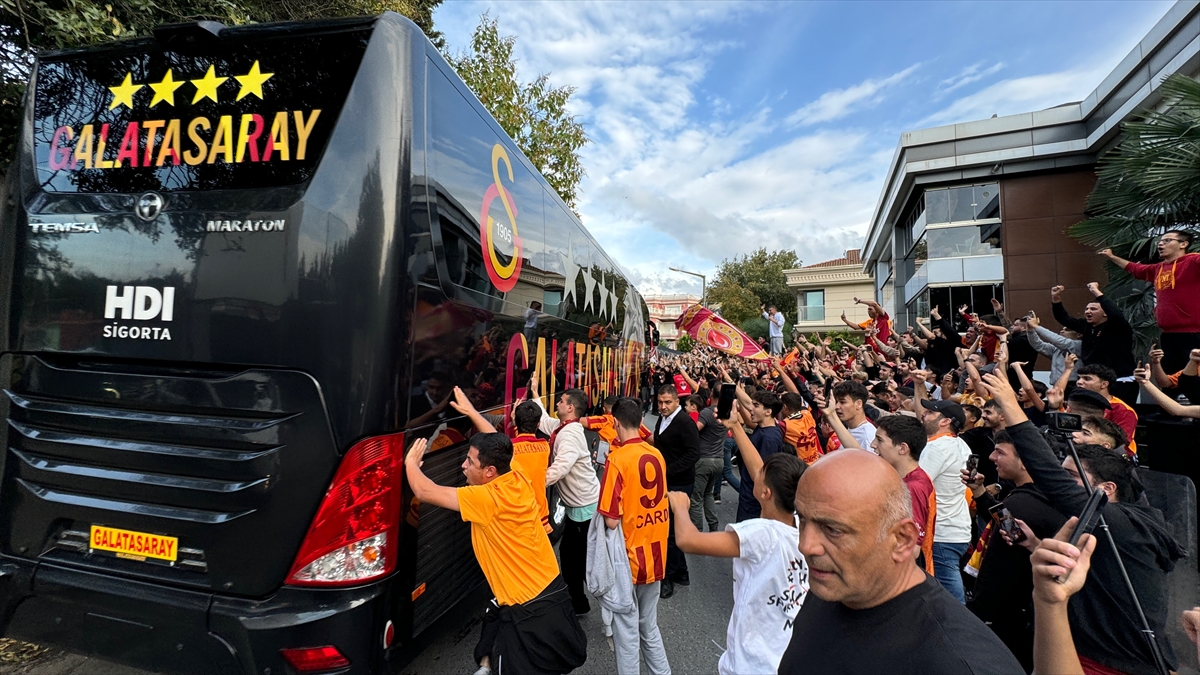 Florya Metin Oktay Tesisleri'nden kalkan otobüsle yola çıkan oyuncuları, sarı-kırmızılı taraftarlar tezahüratlarla ve marşlarla uğurladı.