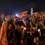 Galatasaray'ın, Süper Lig'in 36. haftasında deplasmanda MKE Ankaragücü'nü 4-1 yenerek şampiyonluğu garantilemesi sonrası Gündoğdu ve Cumhuriyet Meydanı'nda toplanan sarı-kırmızılı taraftarlar, bayraklar ve meşalelerle şampiyonluğu kutladı.