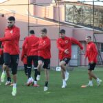 Antrenmana ısınma koşusu ve koordinasyon çalışmasıyla başlayan oyuncular, daha sonra gol organizasyonları üzerinde çalıştı.