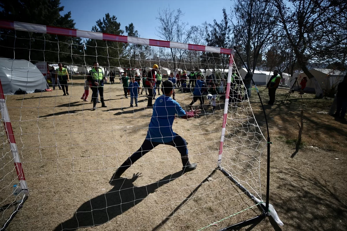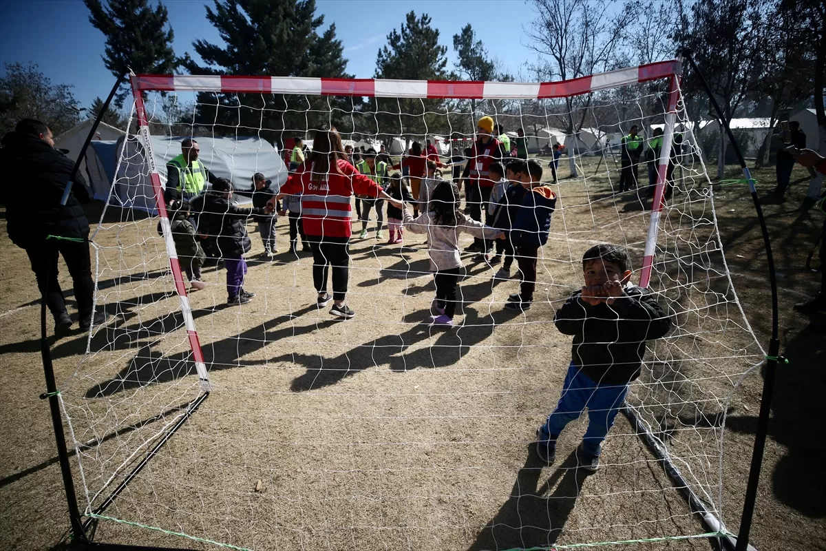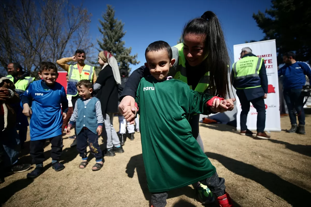 KAHRAMANMARAŞ (AA) – ÖMER ÜRER / EMRE AYVAZ – Türkiye Hentbol Federasyonu organizasyonuyla Kahramanmaraş'ın Pazarcık ilçesindeki çadır kenti ziyaret eden sporcular, birlikte hentbol oynadıkları depremzede çocuklara moral verdi.