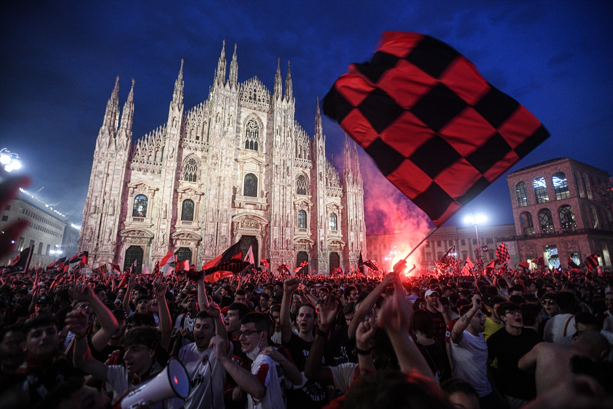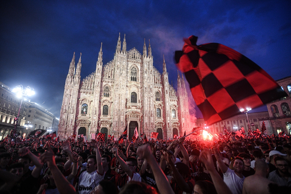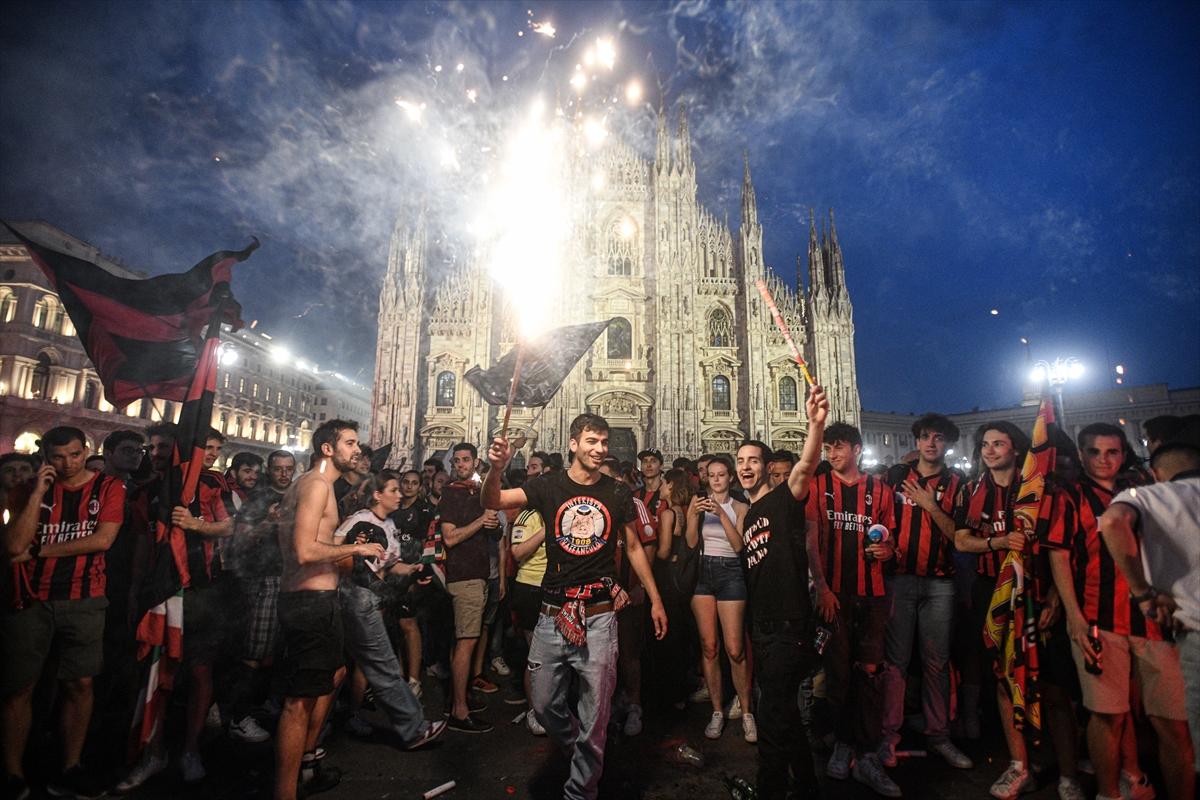 Milan'ın Sassuolo'yu yenerek şampiyon olmasının ardından kırmızı-siyahlı taraftarlar, 11 yıl sonra gelen şampiyonluğu büyük coşkuyla kutladı.