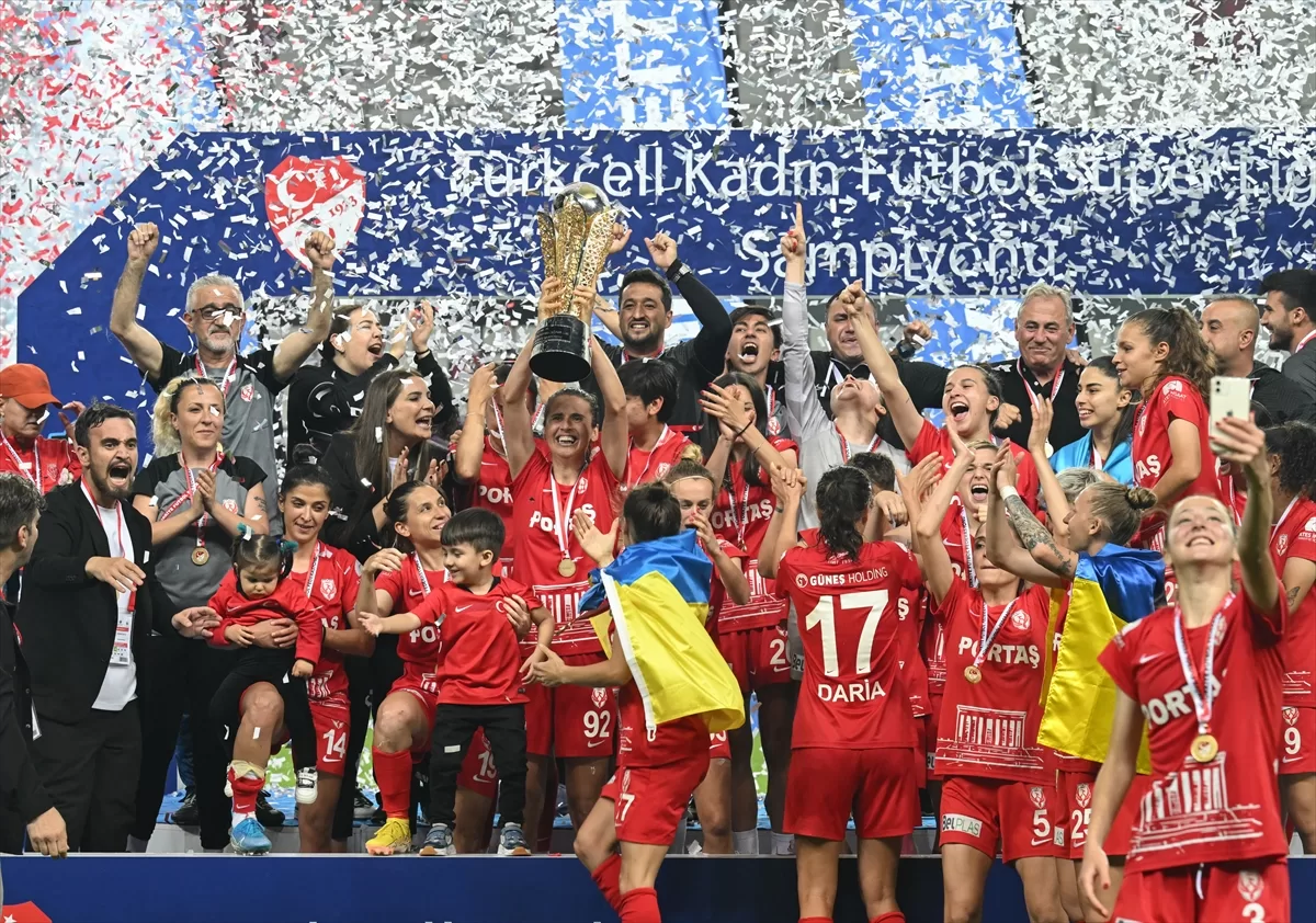 İZMİR (AA) – Turkcell Kadın Futbol Süper Ligi play-off finalinde Fenerbahçe Petrol Ofisi’ni uzatma bölümü sonunda 4-2 yenen Ankara Büyükşehir Belediyesi FOMGET, şampiyonluk kupasını aldı.
