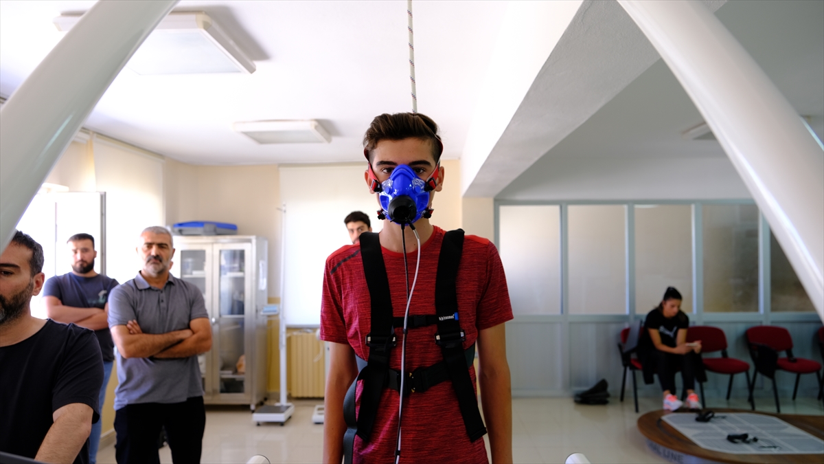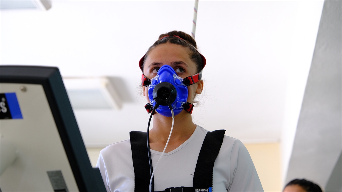 Spor Bilimleri Fakültesinin performans laboratuvarında performans testlerine giren sporcular, müsabakalara hazırlanıyor.