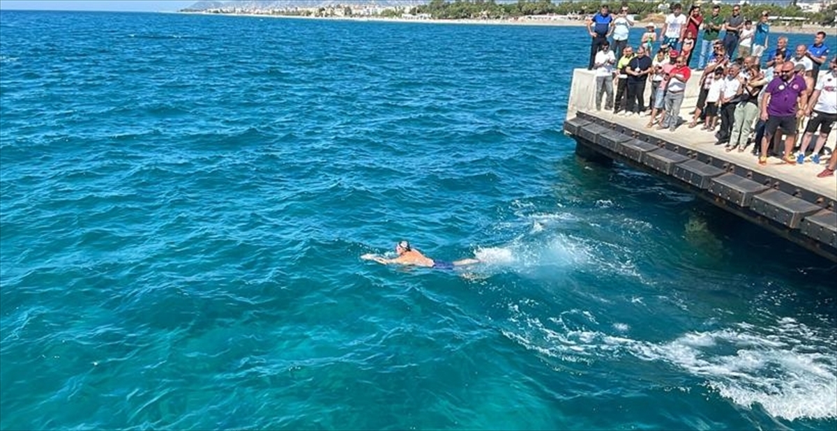 Hazırlıkların ardından sporcular, Anamur Kaymakamı Bilal Bozdemir'den aldıkları Türk bayrağıyla Anamur iskelesinden denize atladı.