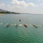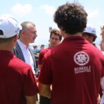 Büyükakın, sporcularla kano teknesini suya indirerek deniz küreği erkeklerde dört çifte dümenli yarışının startını verdi.