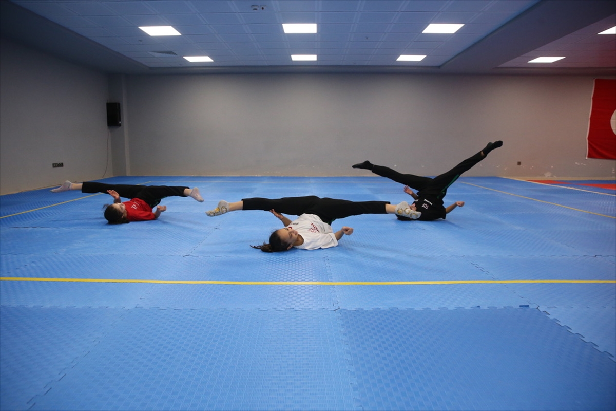 Üst üste iki kez Türkiye şampiyonu olup milli takıma seçilen sporcular, Kocaeli Stadı'ndaki salonda antrenör Akın Poyraz gözetiminde çalışmalarını sürdürüyor.