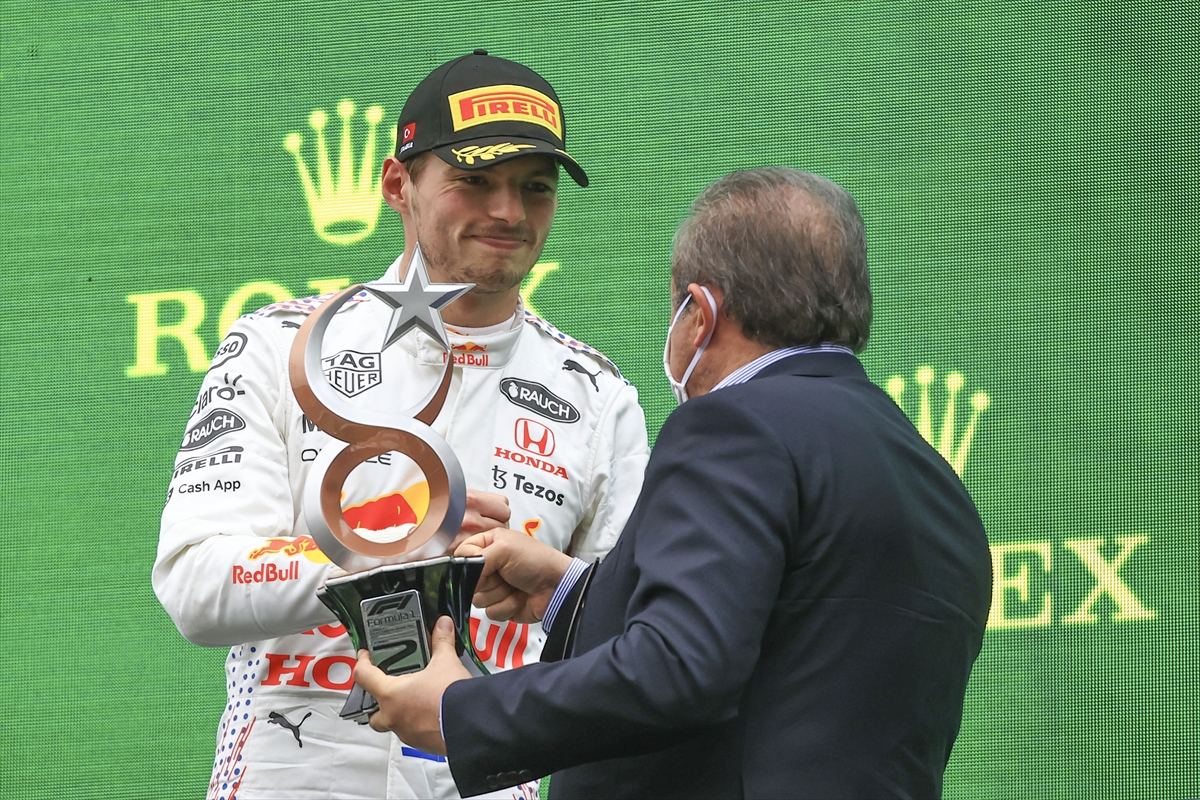 Hamilton ile girdiği şampiyonluk mücadelesinde ıslak zeminde risk almayan Hollandalı pilot, podyumun ikinci basamağına çıktı.