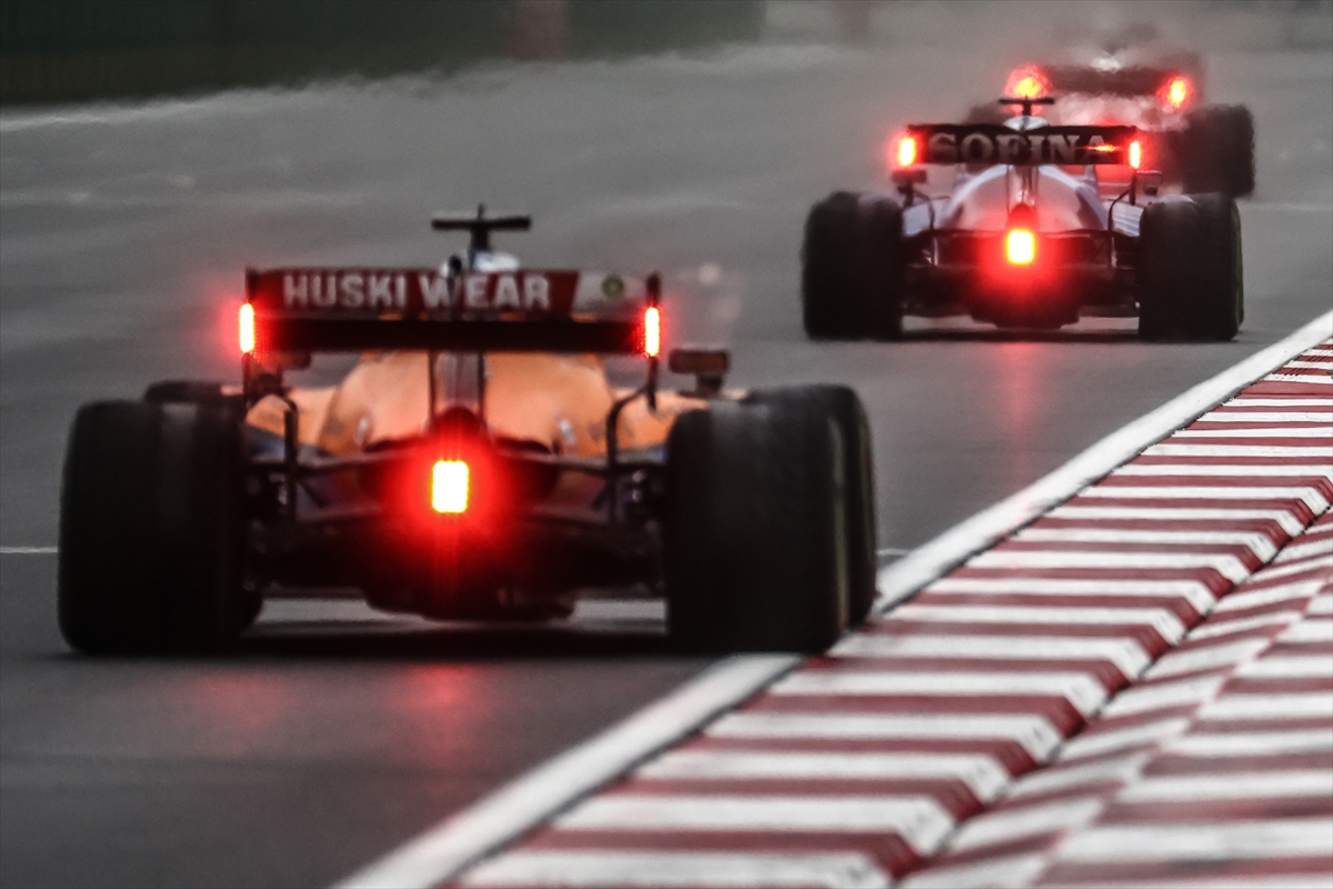 1.34.206 ile en hızlı tur zamanını elde eden Hamilton, 12. virajda geç fren yaparak McLaren pilotu Lando Norris'i geride bıraktı ve 11. turda 6'ncılığı elde etti.