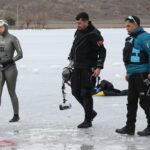 Erken, Tödürge Gölü'nde, Kayseri Türkuaz Doğa Sporları Su Altı ve Akarsu Arama Kurtarma ekibinin gönüllü katılımı ile buz altında dünya rekoru kırmak için dalış gerçekleştirdi.